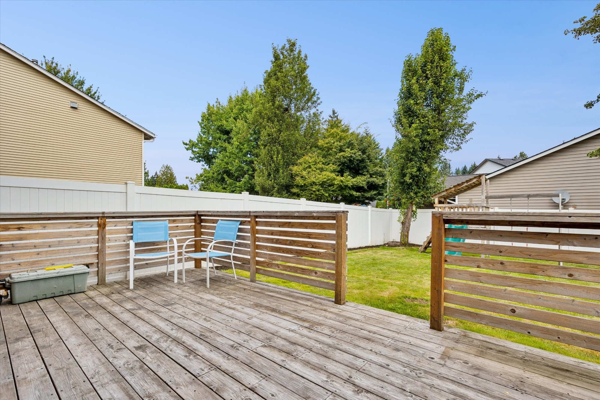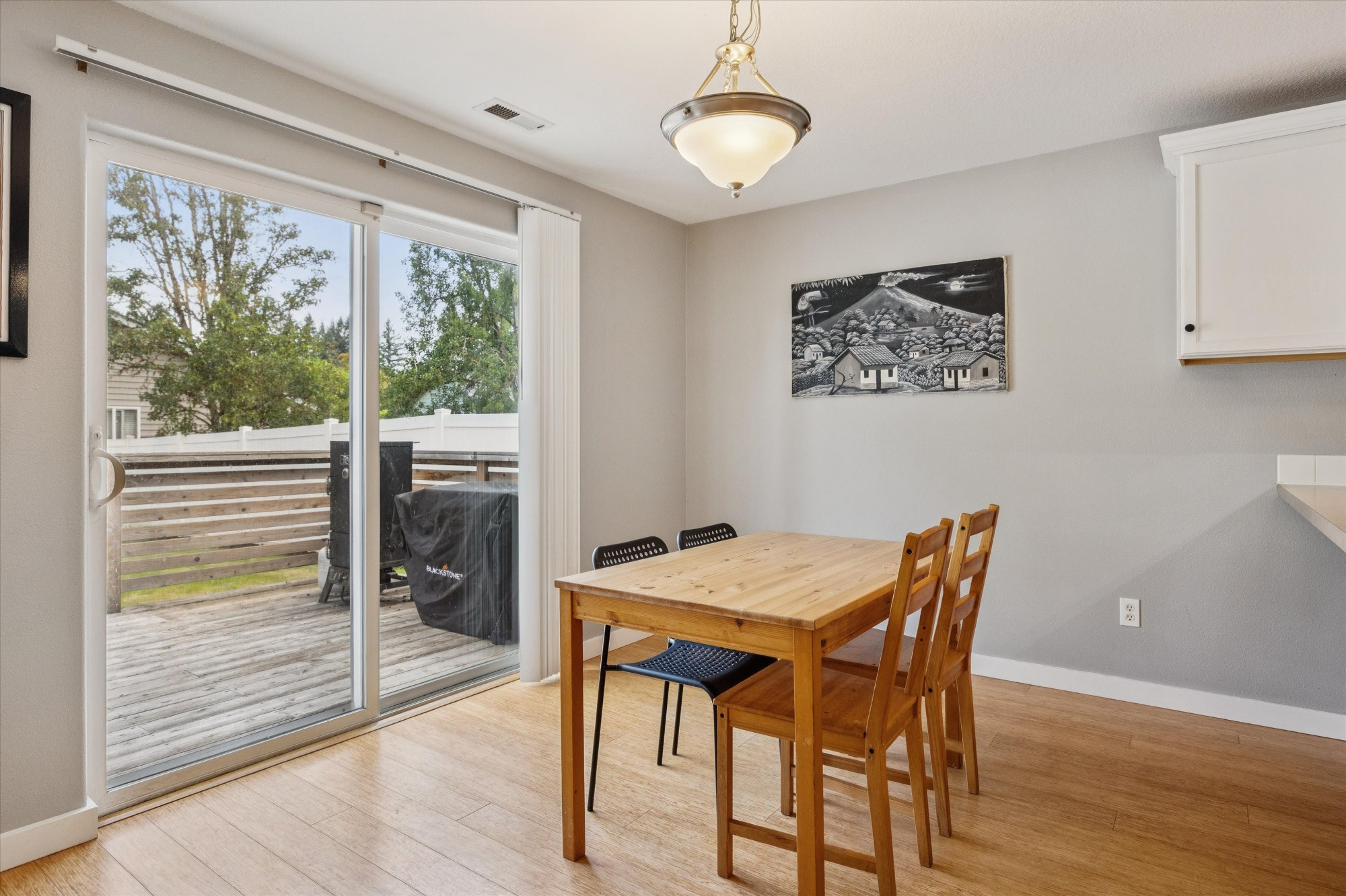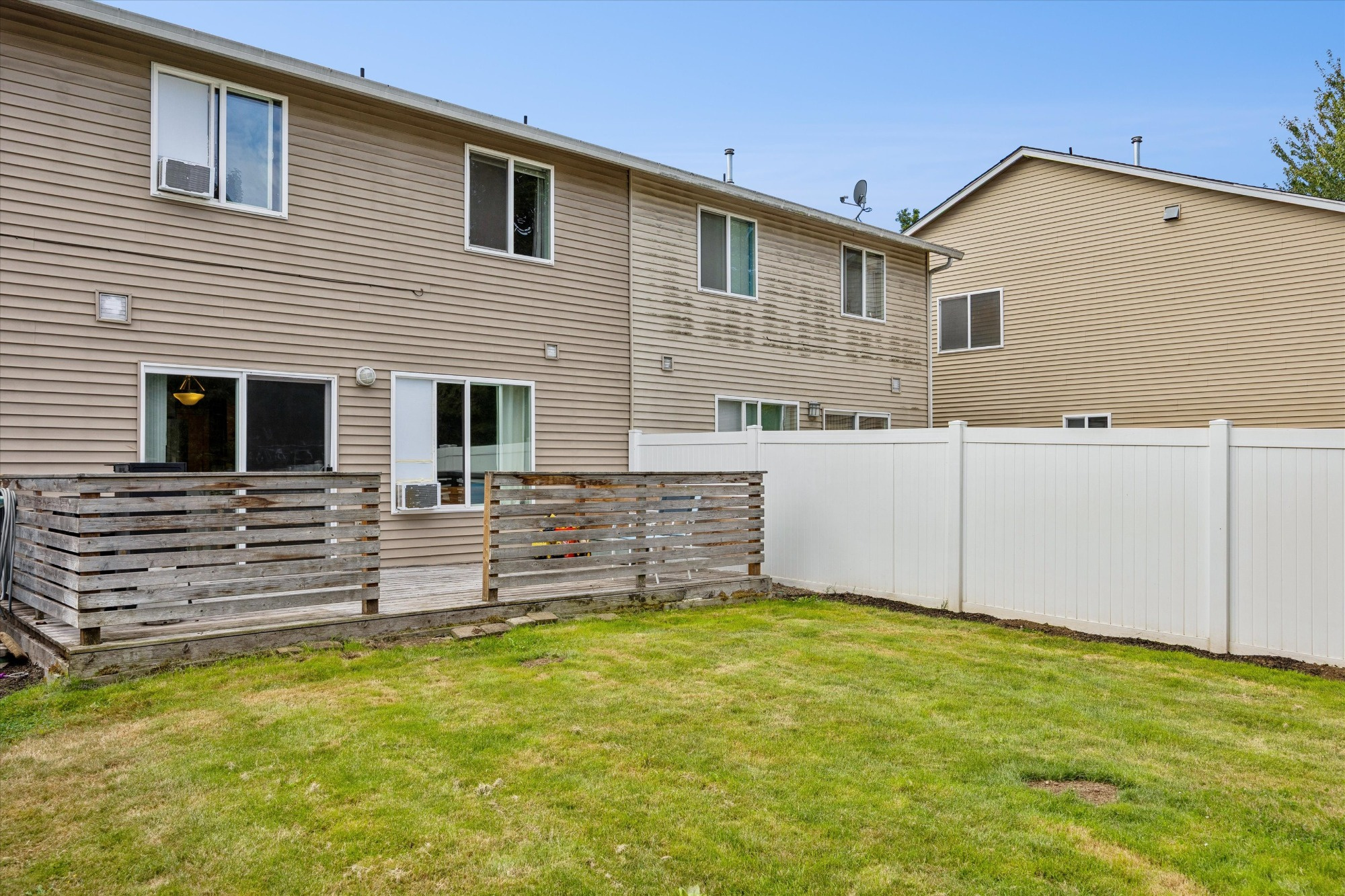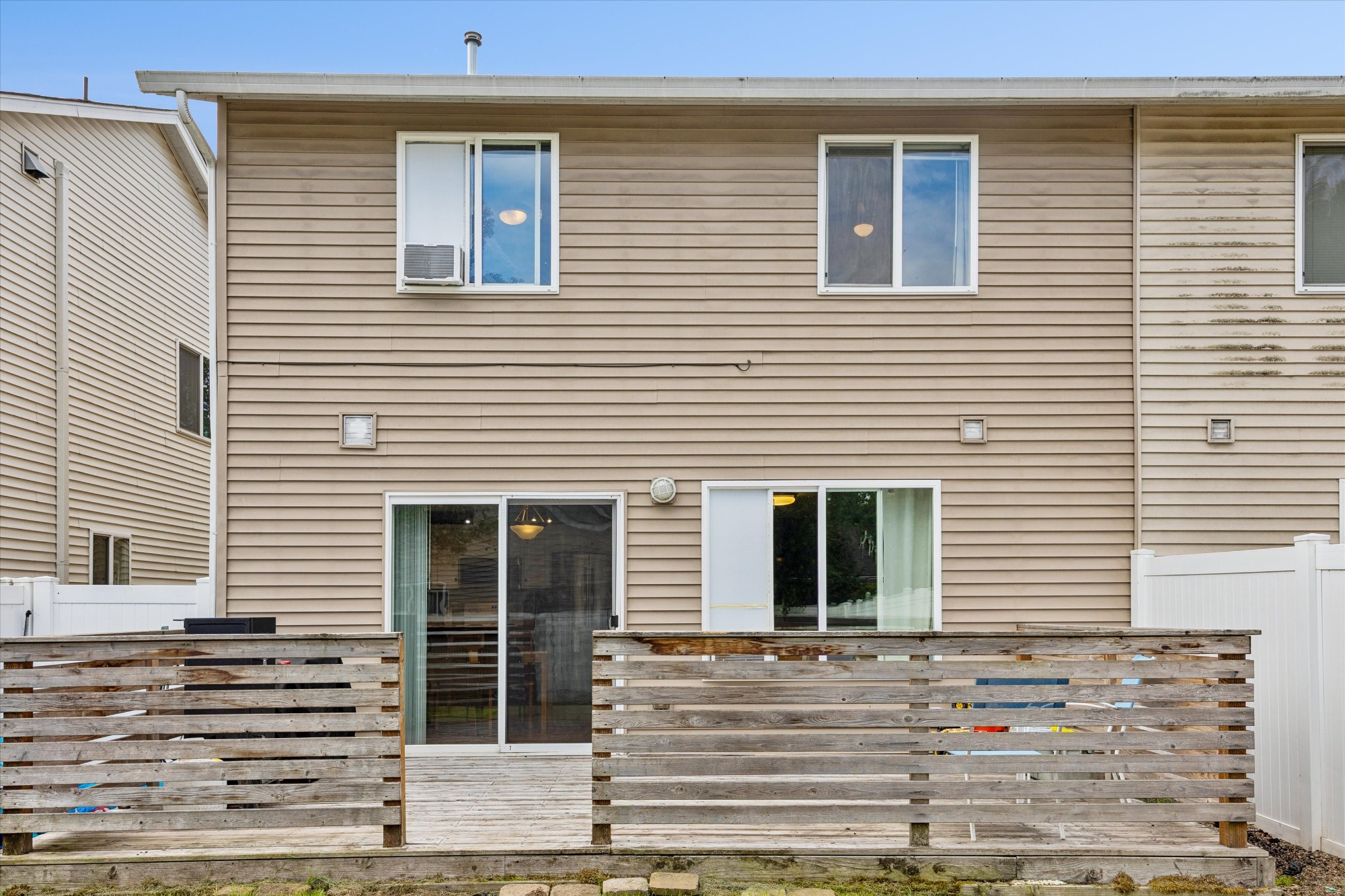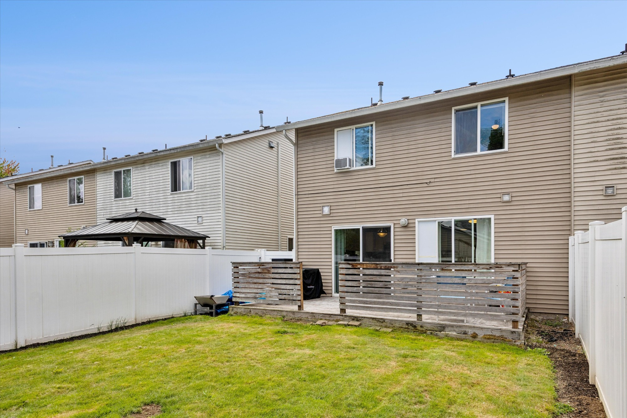 Tucked into a cul-de-sac, this two-story townhome offers a practical layout and plenty of space. The main level includes an open living and dining area with easy access to the backyard. The kitchen provides good storage and counter space along with room for everyday use. Upstairs, the primary bedroom is oversized, with a large walk-in closet and attached ensuite. Two additional bedrooms and a separate laundry room complete the upper floor. The fully fenced backyard has a large deck for entertaining. Conveniently located near shopping, schools, and commuter routes.