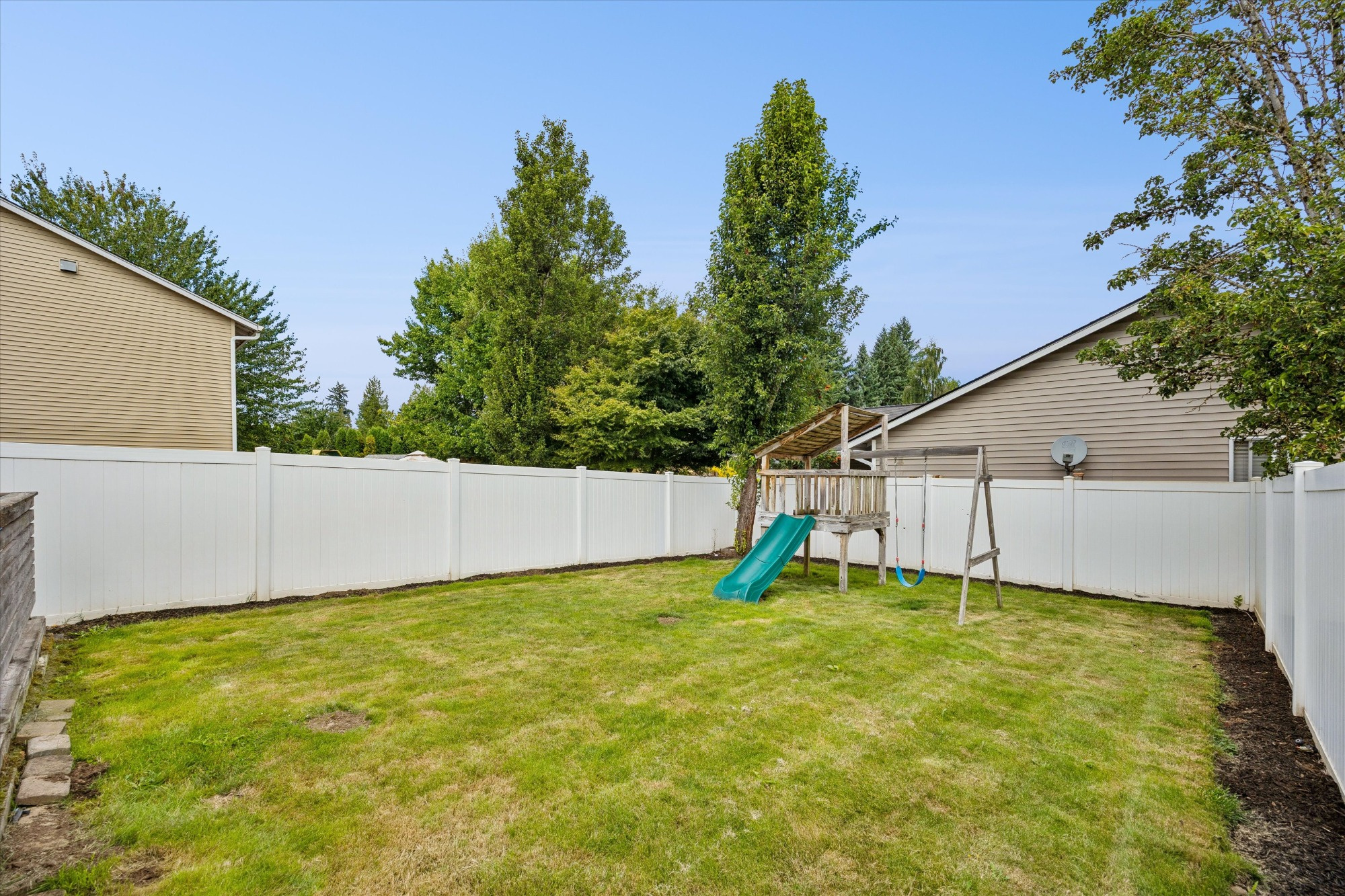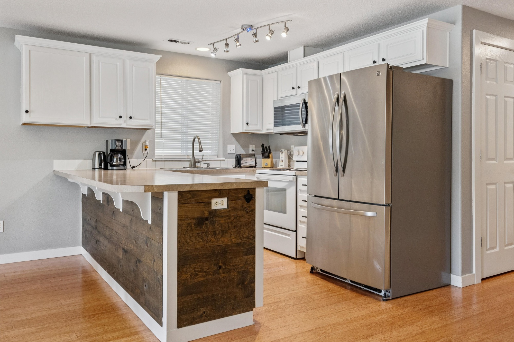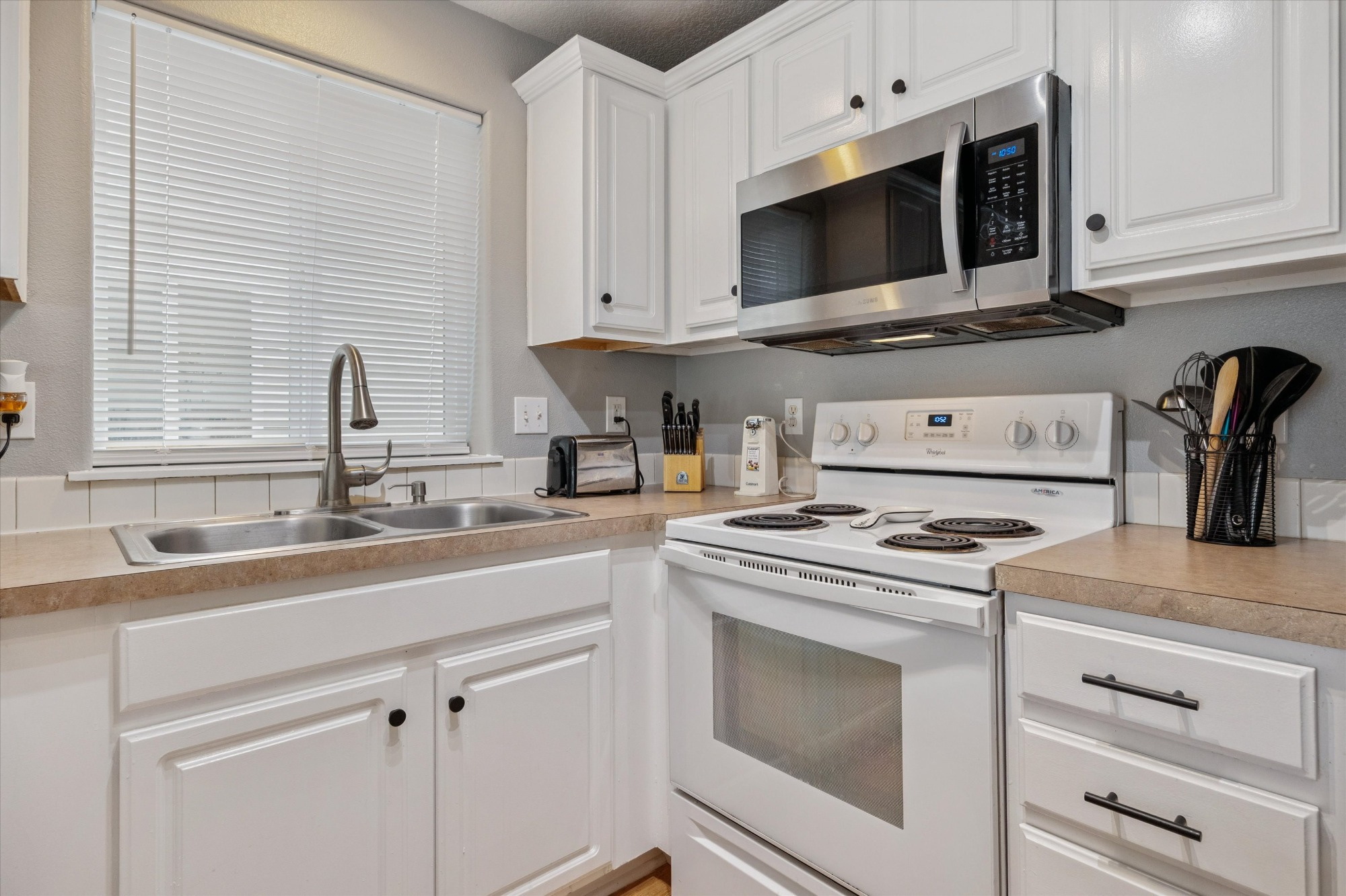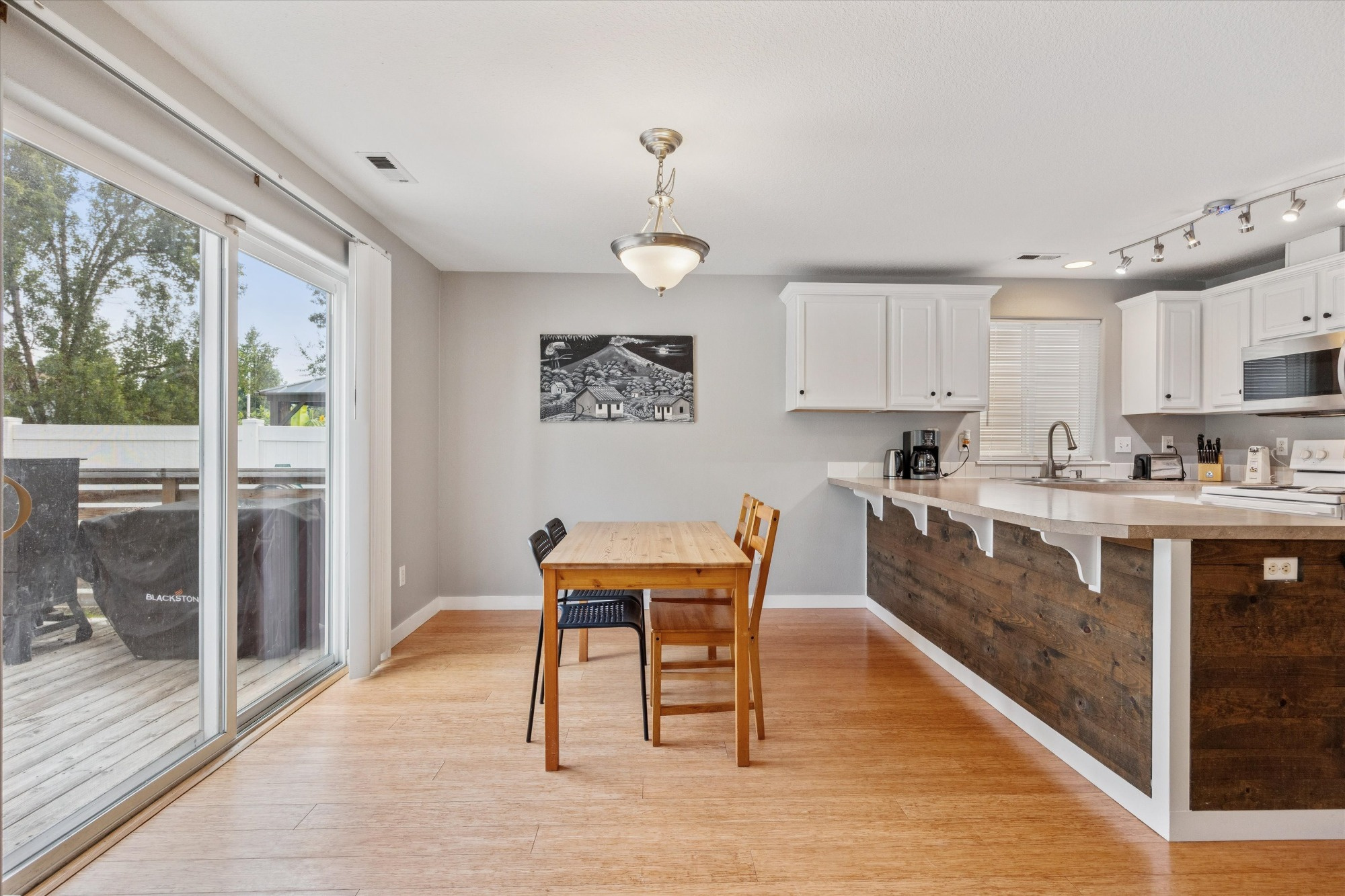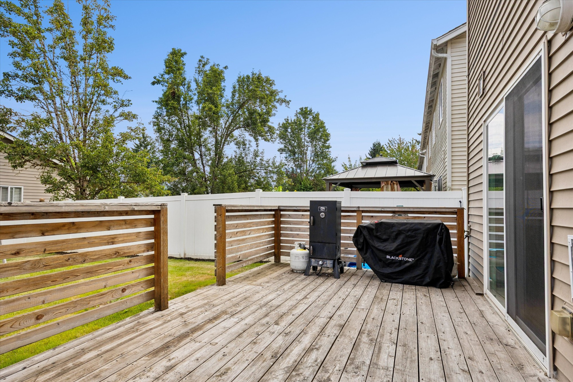 Tucked into a cul-de-sac, this two-story townhome offers a practical layout and plenty of space. The main level includes an open living and dining area with easy access to the backyard. The kitchen provides good storage and counter space along with room for everyday use. Upstairs, the primary bedroom is oversized, with a large walk-in closet and attached ensuite. Two additional bedrooms and a separate laundry room complete the upper floor. The fully fenced backyard has a large deck for entertaining. Conveniently located near shopping, schools, and commuter routes.