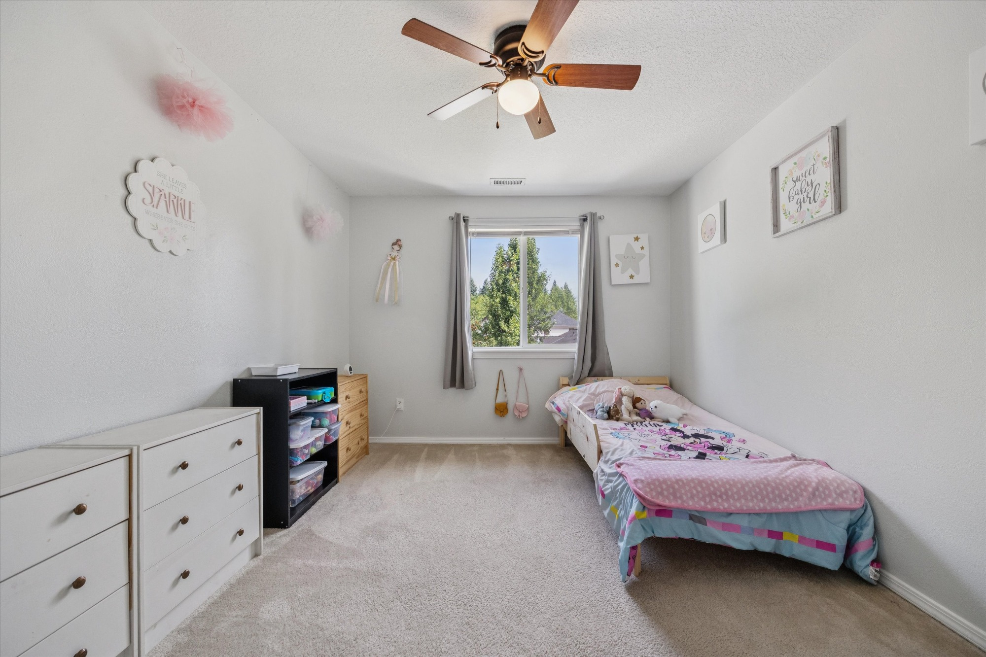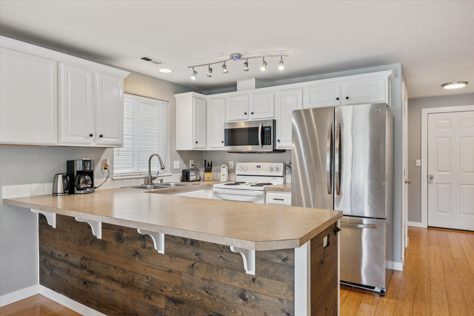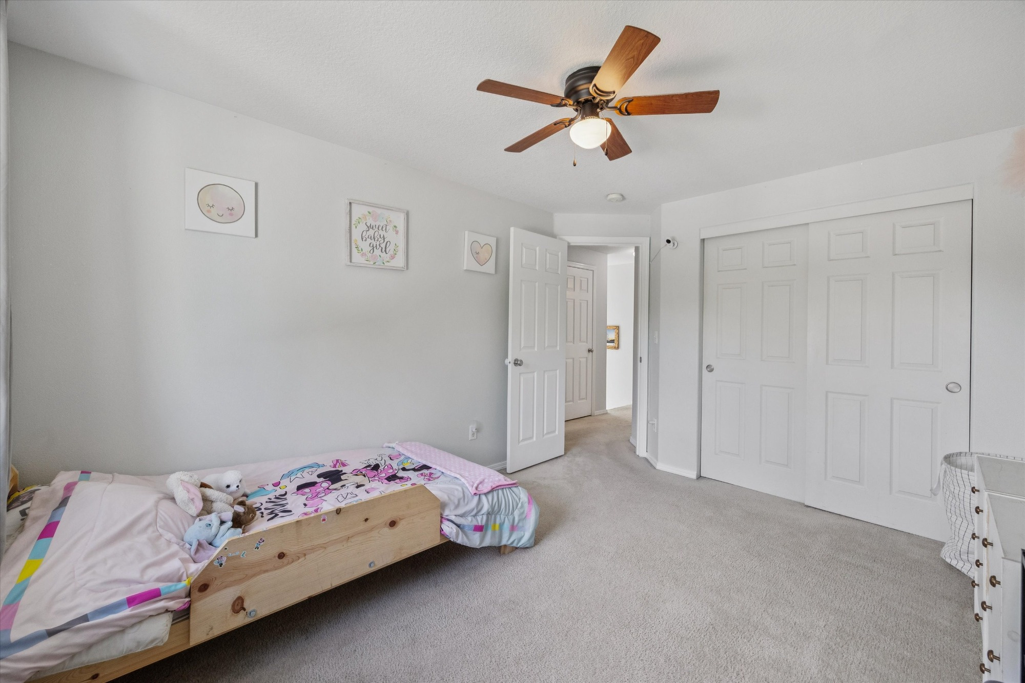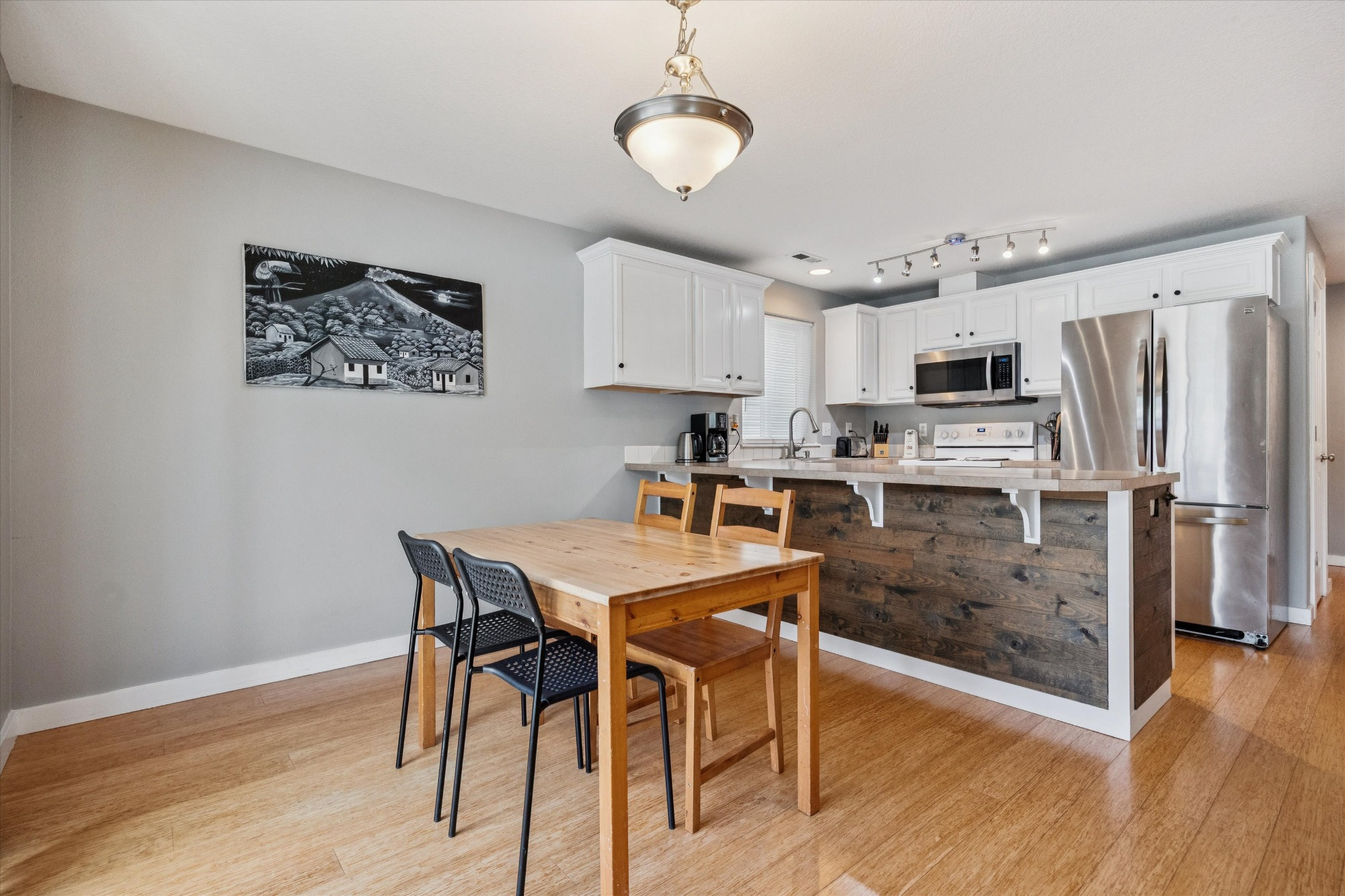Tucked into a cul-de-sac, this two-story townhome offers a practical layout and plenty of space. The main level includes an open living and dining area with easy access to the backyard. The kitchen provides good storage and counter space along with room for everyday use. Upstairs, the primary bedroom is oversized, with a large walk-in closet and attached ensuite. Two additional bedrooms and a separate laundry room complete the upper floor. The fully fenced backyard has a large deck for entertaining. Conveniently located near shopping, schools, and commuter routes.