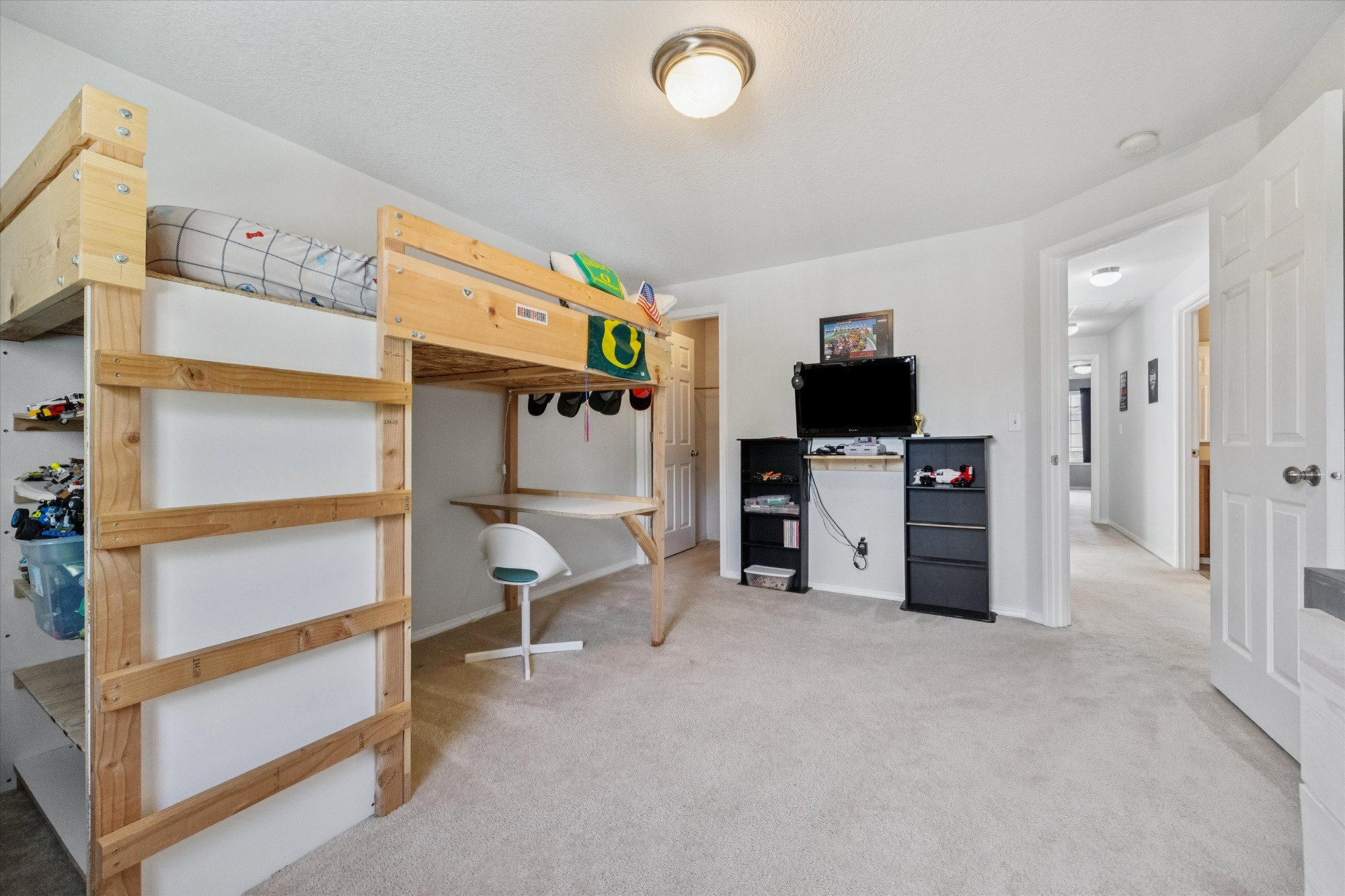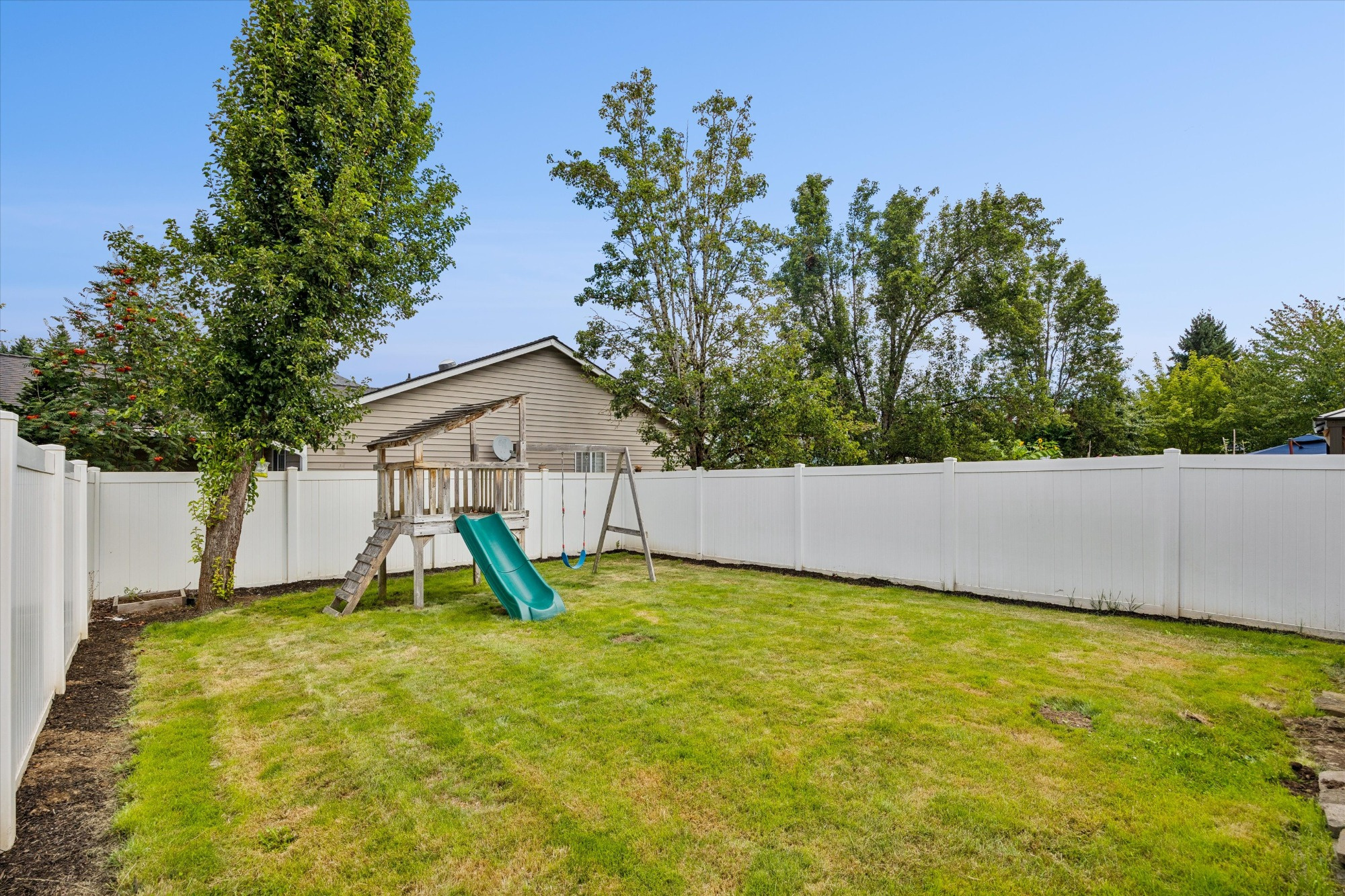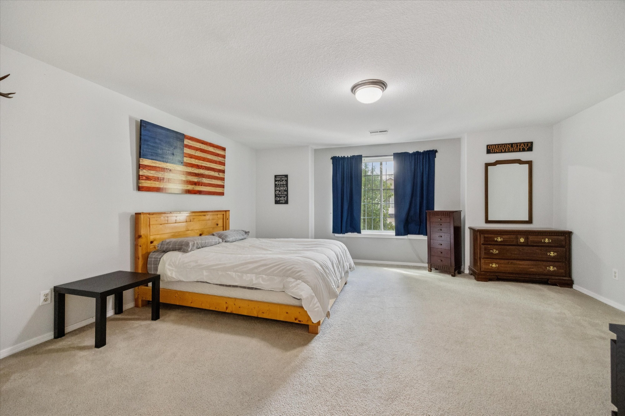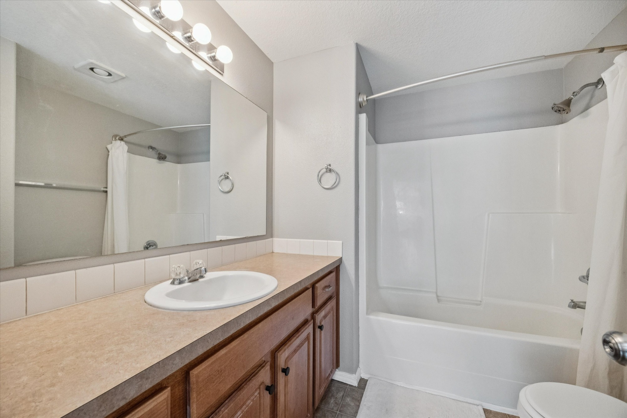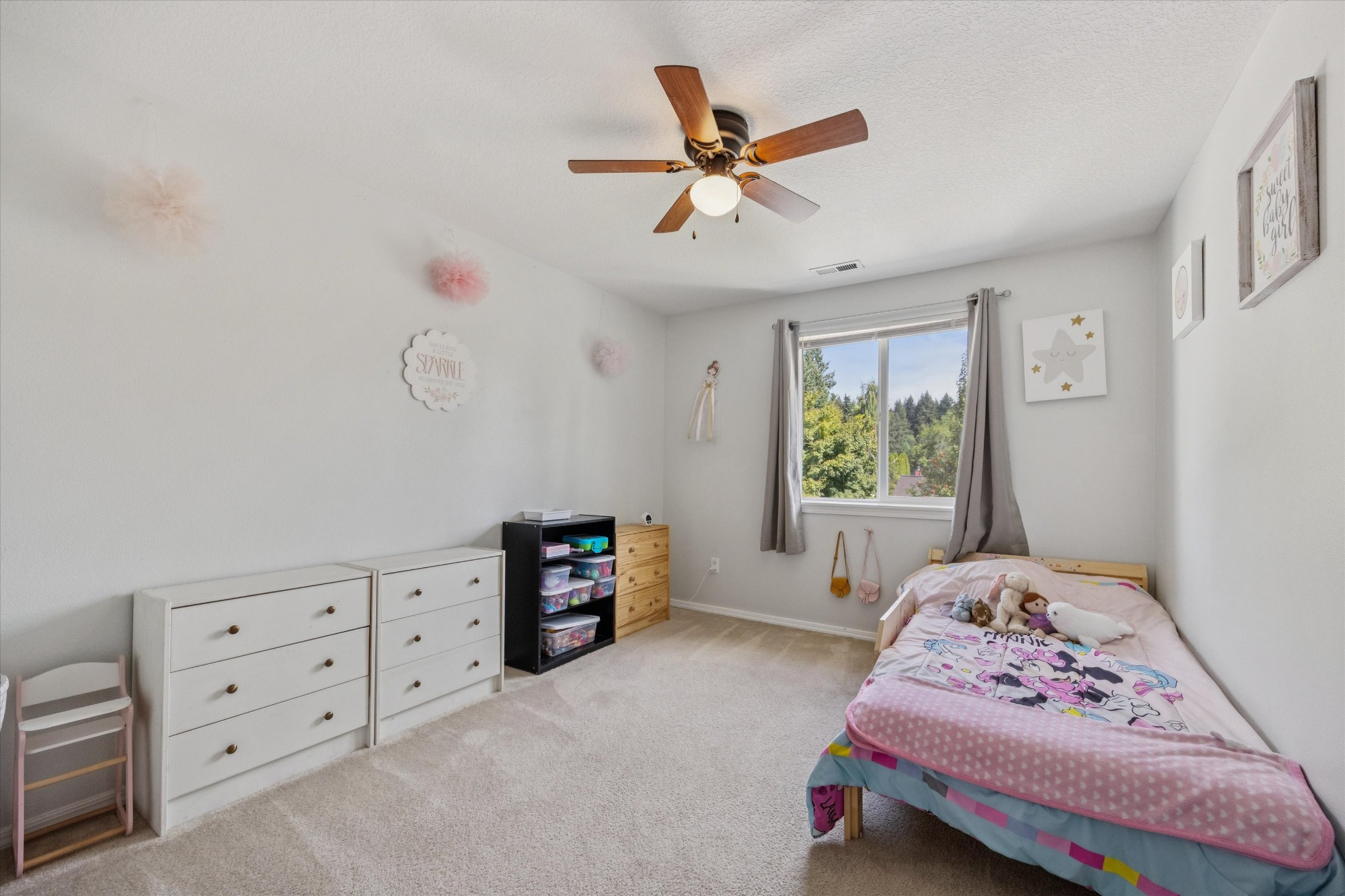 Tucked into a cul-de-sac, this two-story townhome offers a practical layout and plenty of space. The main level includes an open living and dining area with easy access to the backyard. The kitchen provides good storage and counter space along with room for everyday use. Upstairs, the primary bedroom is oversized, with a large walk-in closet and attached ensuite. Two additional bedrooms and a separate laundry room complete the upper floor. The fully fenced backyard has a large deck for entertaining. Conveniently located near shopping, schools, and commuter routes.