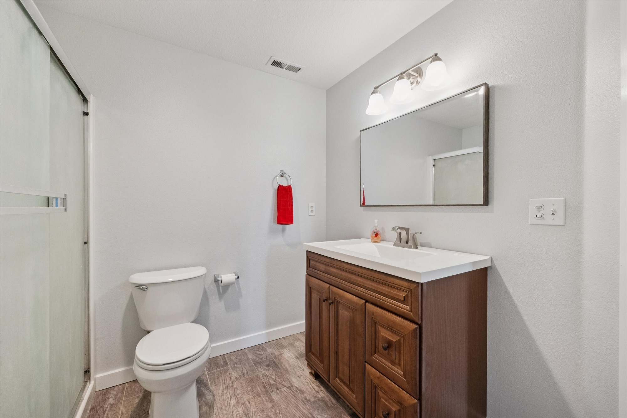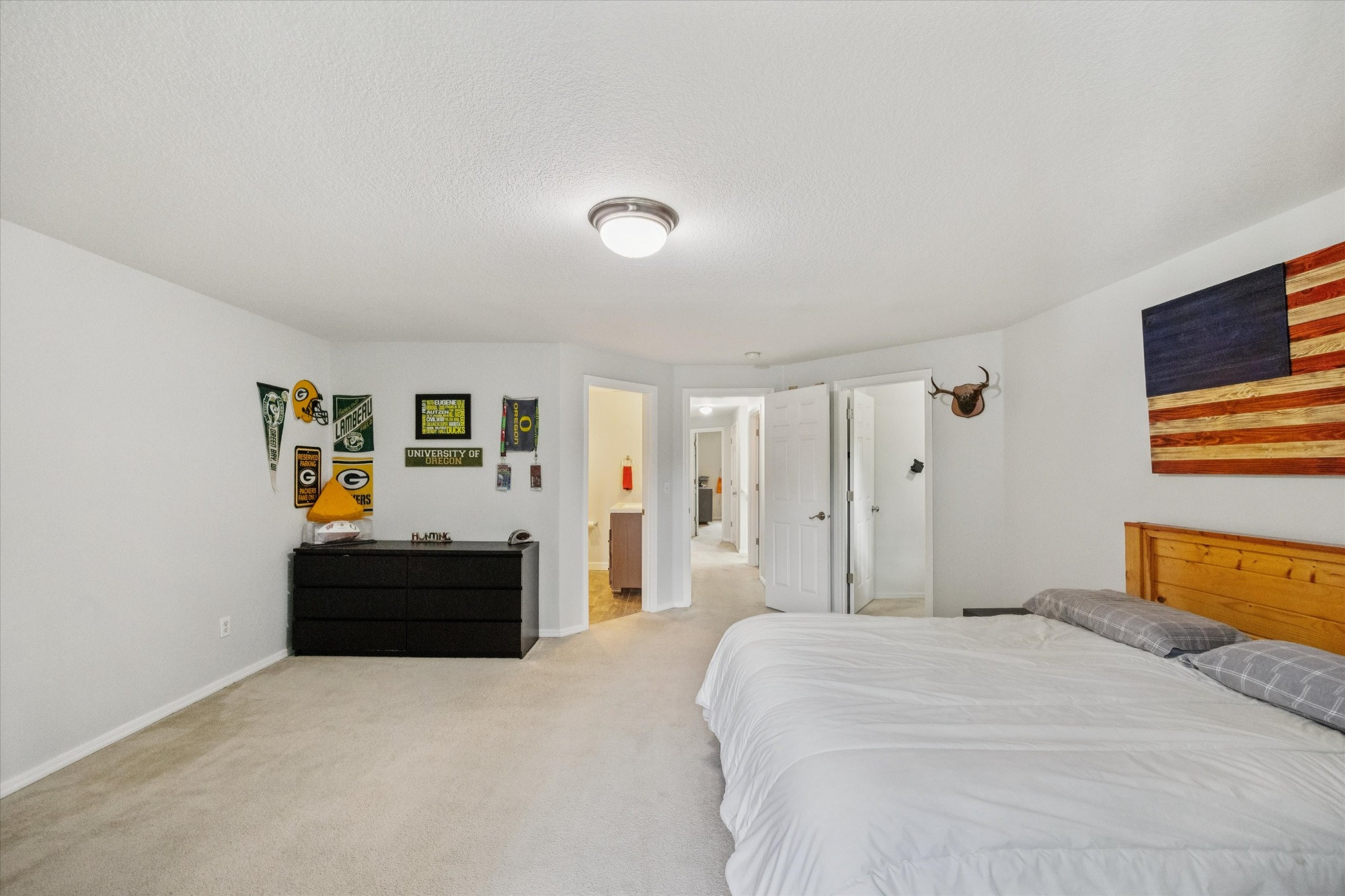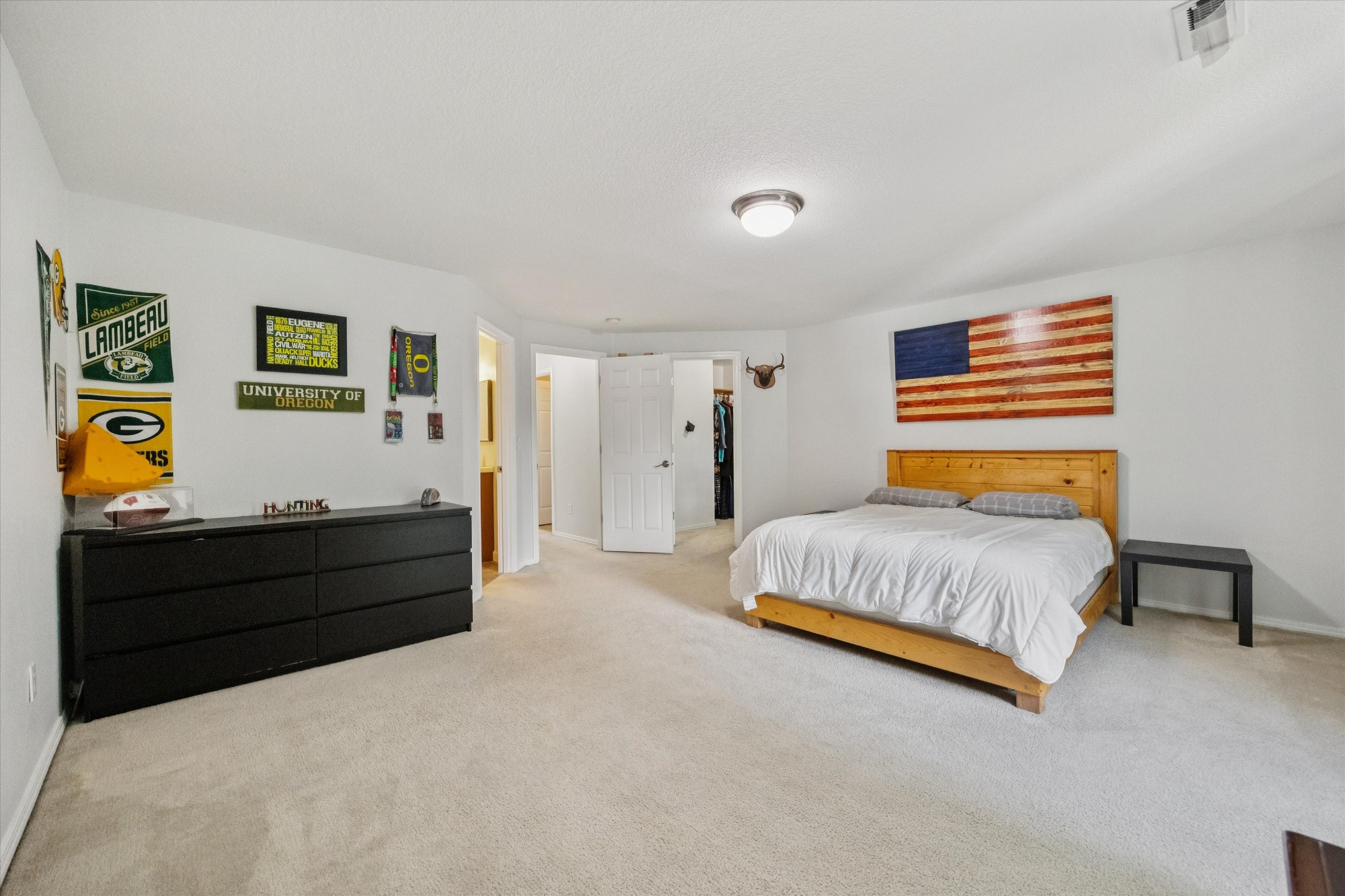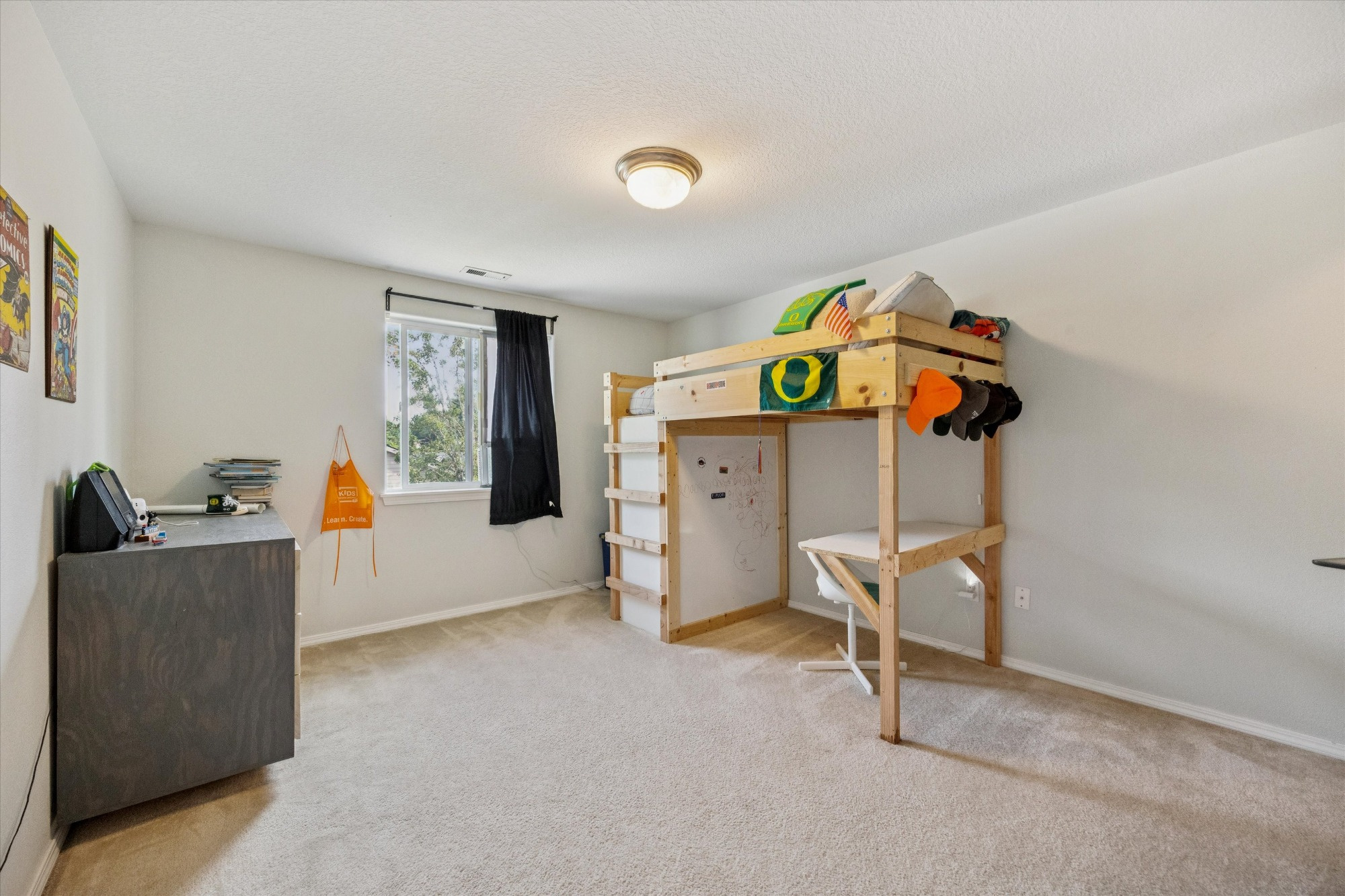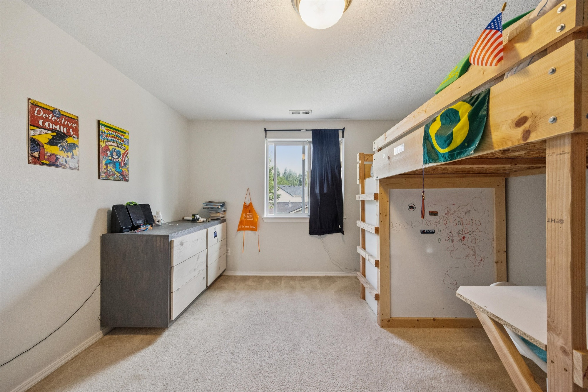 Tucked into a cul-de-sac, this two-story townhome offers a practical layout and plenty of space. The main level includes an open living and dining area with easy access to the backyard. The kitchen provides good storage and counter space along with room for everyday use. Upstairs, the primary bedroom is oversized, with a large walk-in closet and attached ensuite. Two additional bedrooms and a separate laundry room complete the upper floor. The fully fenced backyard has a large deck for entertaining. Conveniently located near shopping, schools, and commuter routes.